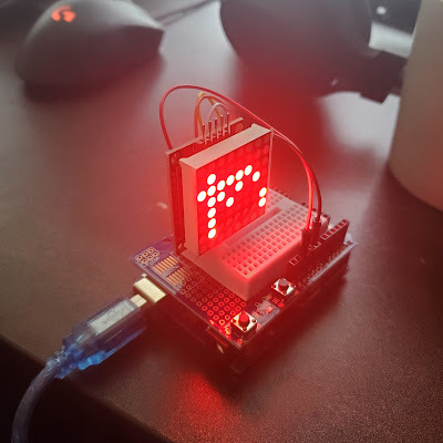 아두이노 스타트키트에 동봉된 8x8 도트 매트릭스로, 아기자기하게 쓸 수 있을 것 같다.